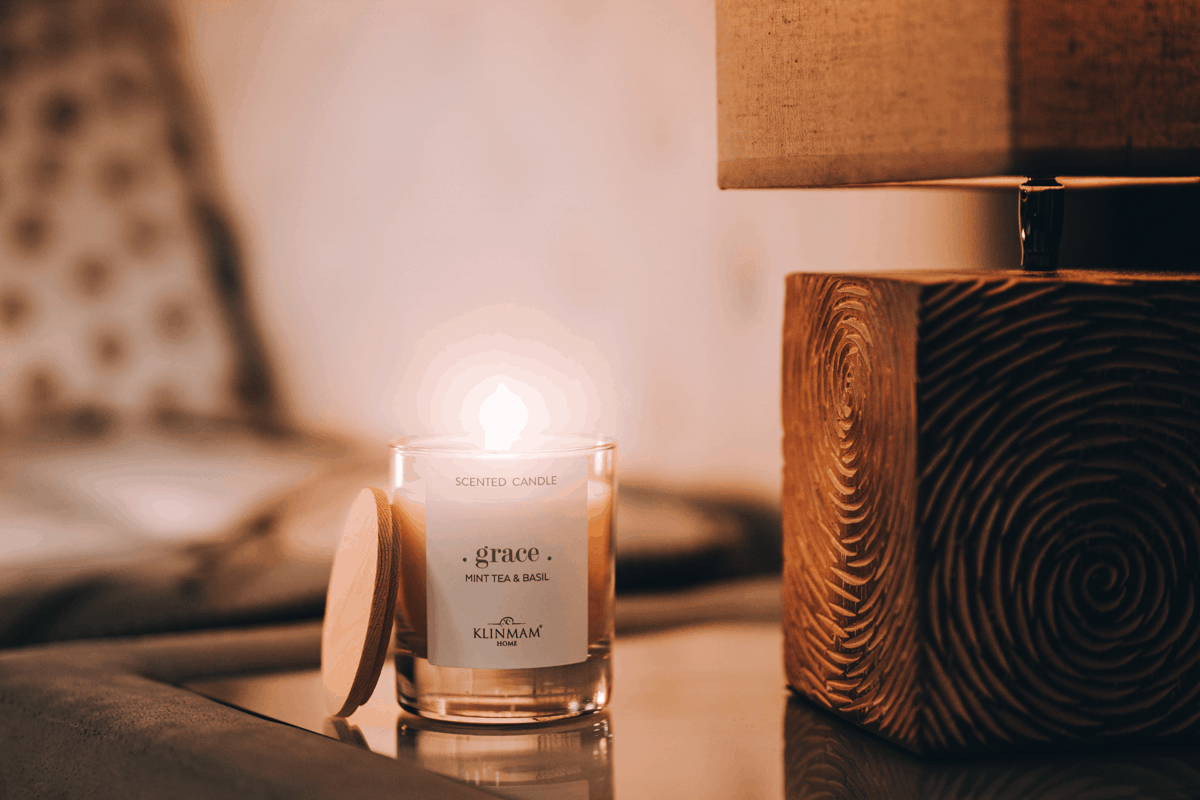 Luksuzna Klinmam Home sveća Mint and Basil, od prirodnih sastojaka sa svežim mirisom nane i bosiljka