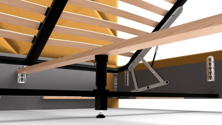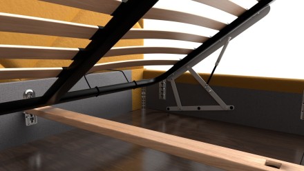 Sa prostorom za odlaganje i ramom sa letvicama: U ovoj varijanti okvir obuhvata prostor za odlaganje i ram kreveta tipa LIFT, koji omogućava pristup prostora za odlaganje. Ram je pričvršćen za podnožje pomoću gasnih klipova, koji ne stvaraju nikakve neprijatne zvukove tokom rukovanja i veoma su udobni za upotrebu.
