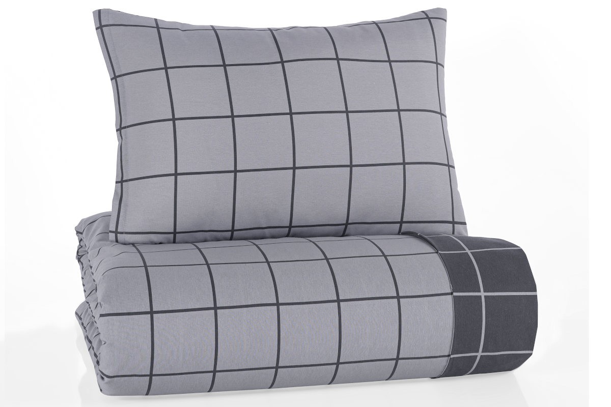 Tia posteljina je izrađena od visokokvalitetnog pamuka, čija su vlakna mekana i prijatna na dodir. Diskretna kvadratna aplikacija u kombinaciji sa sivim nijansama savršeno će upotpuniti svaku spavaću sobu. Materijal savršeno odvodi vlagu, teško se gužva i dugo zadržava svoj oblik i boju. Jednom kada ga budete koristili za pokrivanje, više nećete želeti da ustanete iz kreveta. Mekoća pamuka će vas bukvalno zagrliti i pružiti vam savršen odmor.