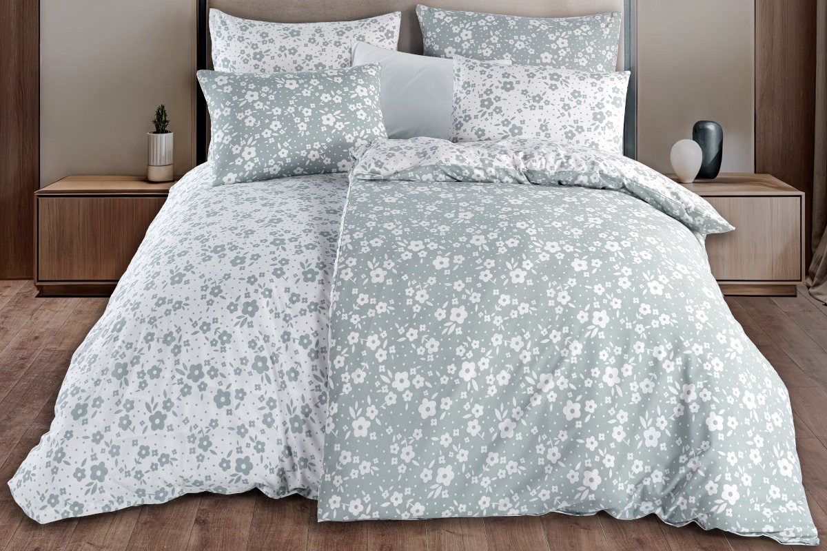Pamučna posteljina sa cvetovima Minty, 140x200 cm + 70x90 cm