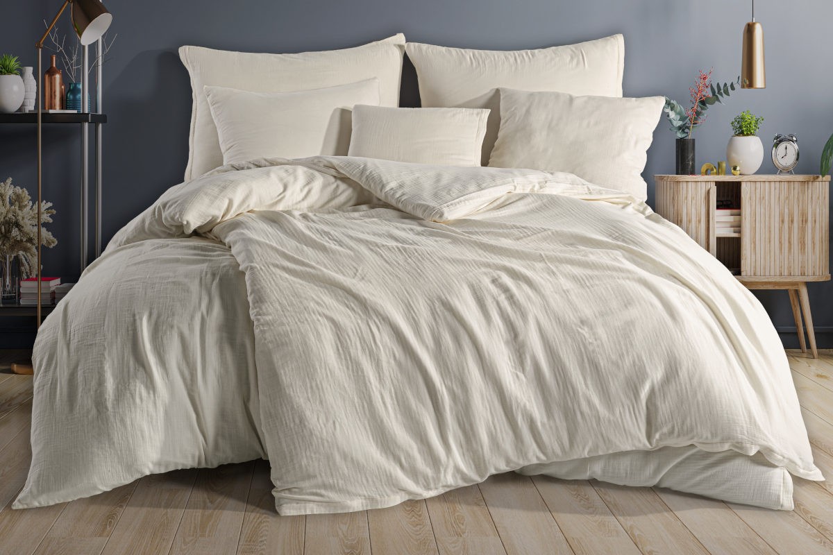 Muslin posteljina će vam pružiti prirodnu mekoću, lakoću i maksimalnu udobnost. Napravljen je od 100% pamuka. To je vrsta labavo tkane dvoslojne pamučne tkanine povezane nevidljivim šavovima. Izdvaja se svojom mekoćom, prozračnošću i veoma je prijatan na dodir. Muslin posteljina je pogodna za upotrebu tokom cele godine. Promoviše miran i nesmetan san.