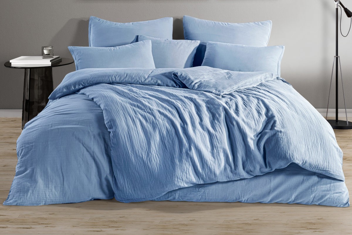 Premium muslin posteljina, boja svetlo plava, 140x200 cm + 70x90 cm